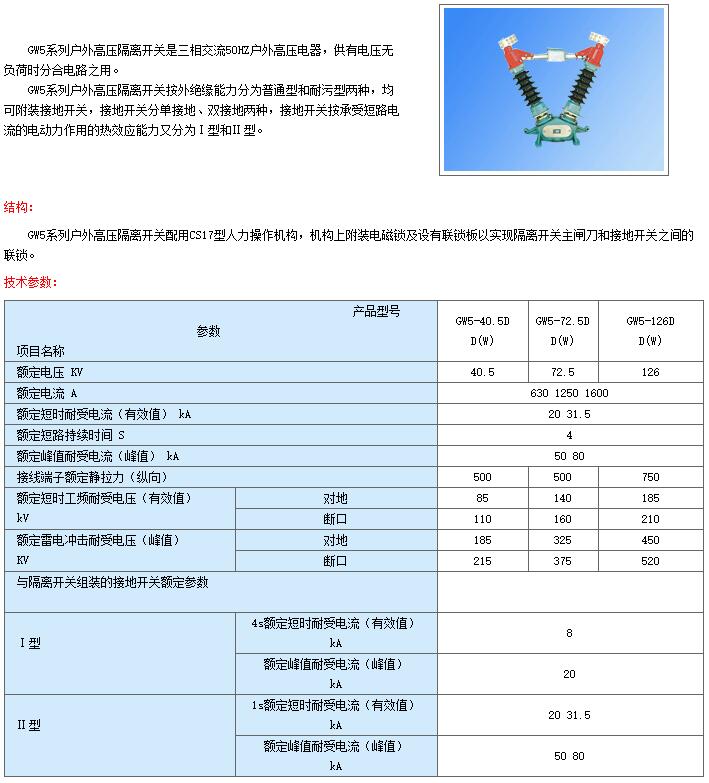 GW5系列戶外高壓隔離開關
